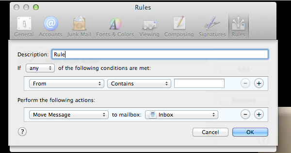 In the "Rules" window, type a name for your rule in the "Description" field.